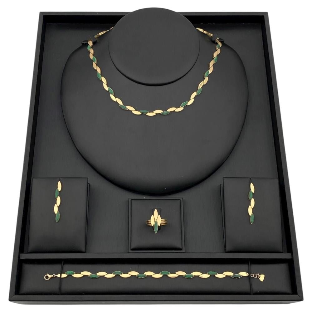 مواصفات طقم طقم ذهب ايطالي Bovo عيار 18 وزن 28.60 جم المزخرف بالذهبي والأخضر