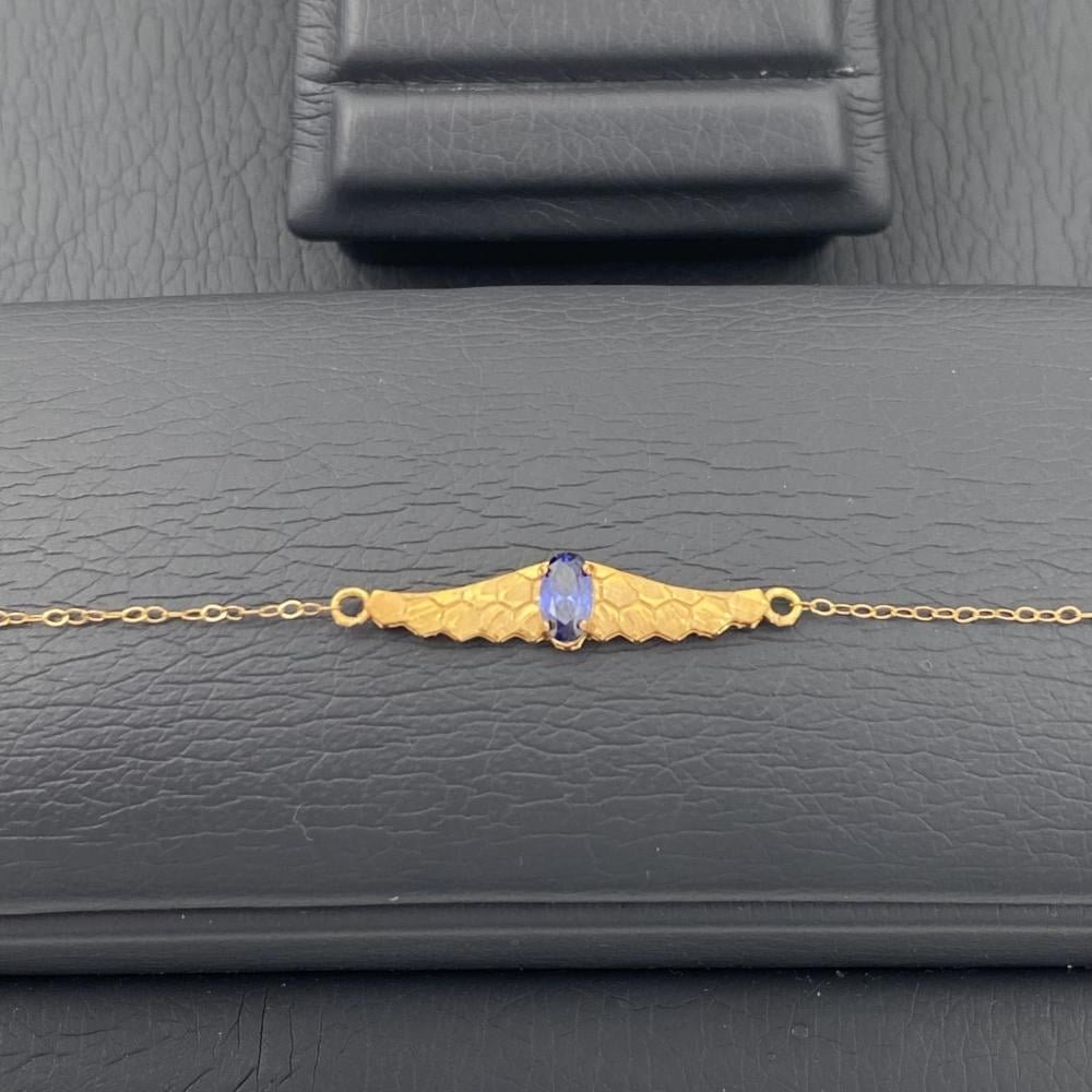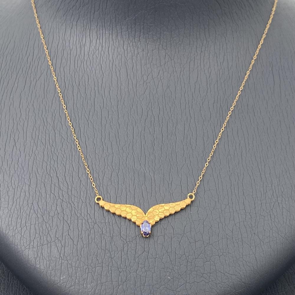 طقم جناح الصقر ذهب عيار 21 وزن 3.56 جرام بفص ازرق راق