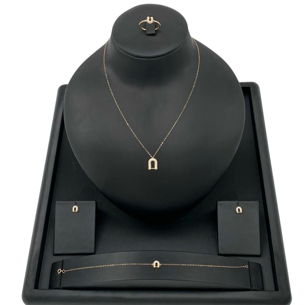 طقم ذهب حدوة الحظ عيار 18 وزن 2.60 جم مرصع فاخر يخطف القلوب