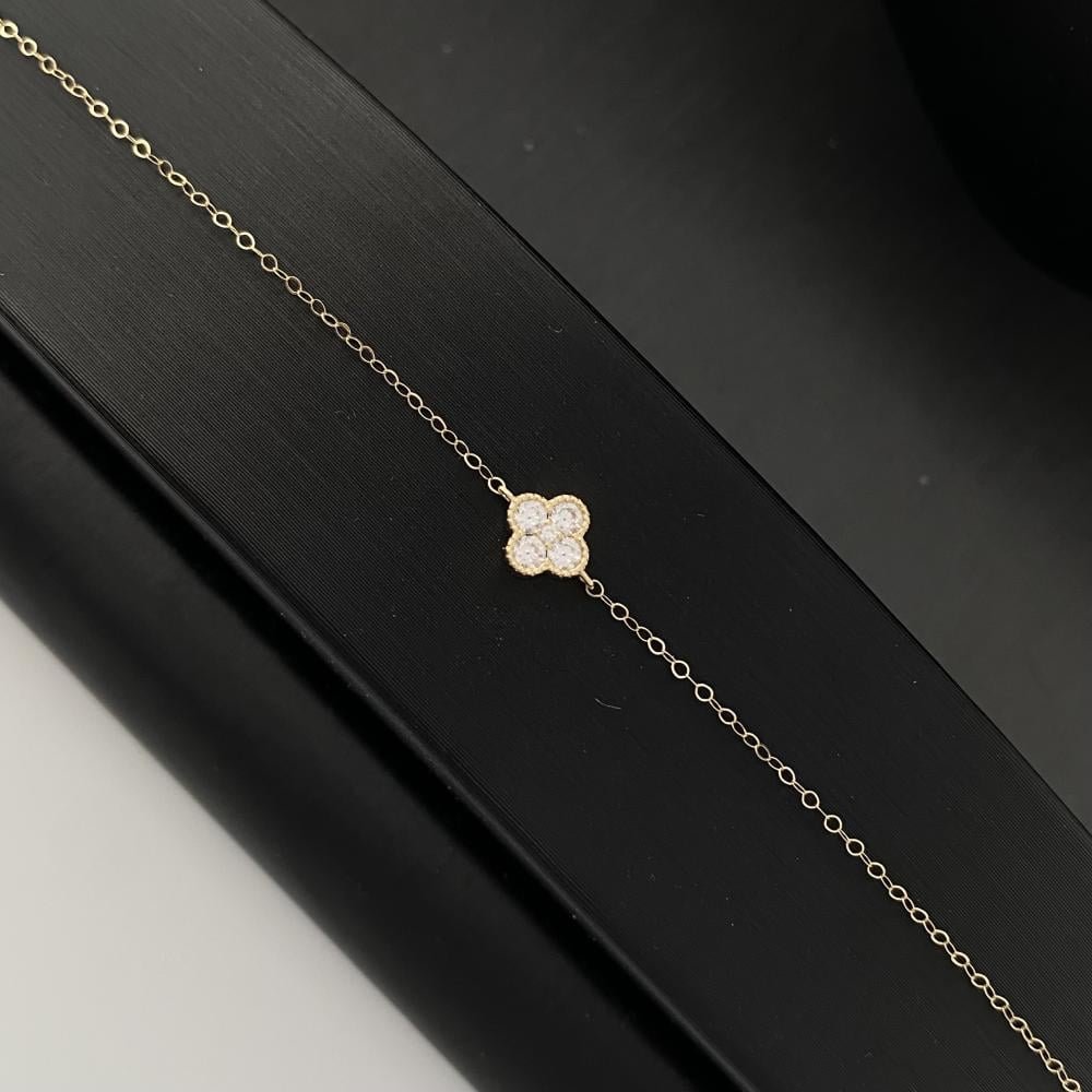 طقم ذهب عيار 18 وزن 2.18 جم تصميم مستوحى من فان كليف يمنح الطقم حضورًا راقيًا