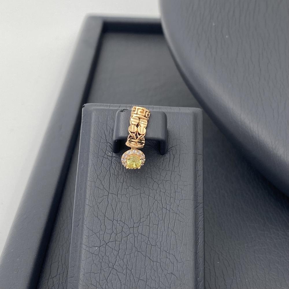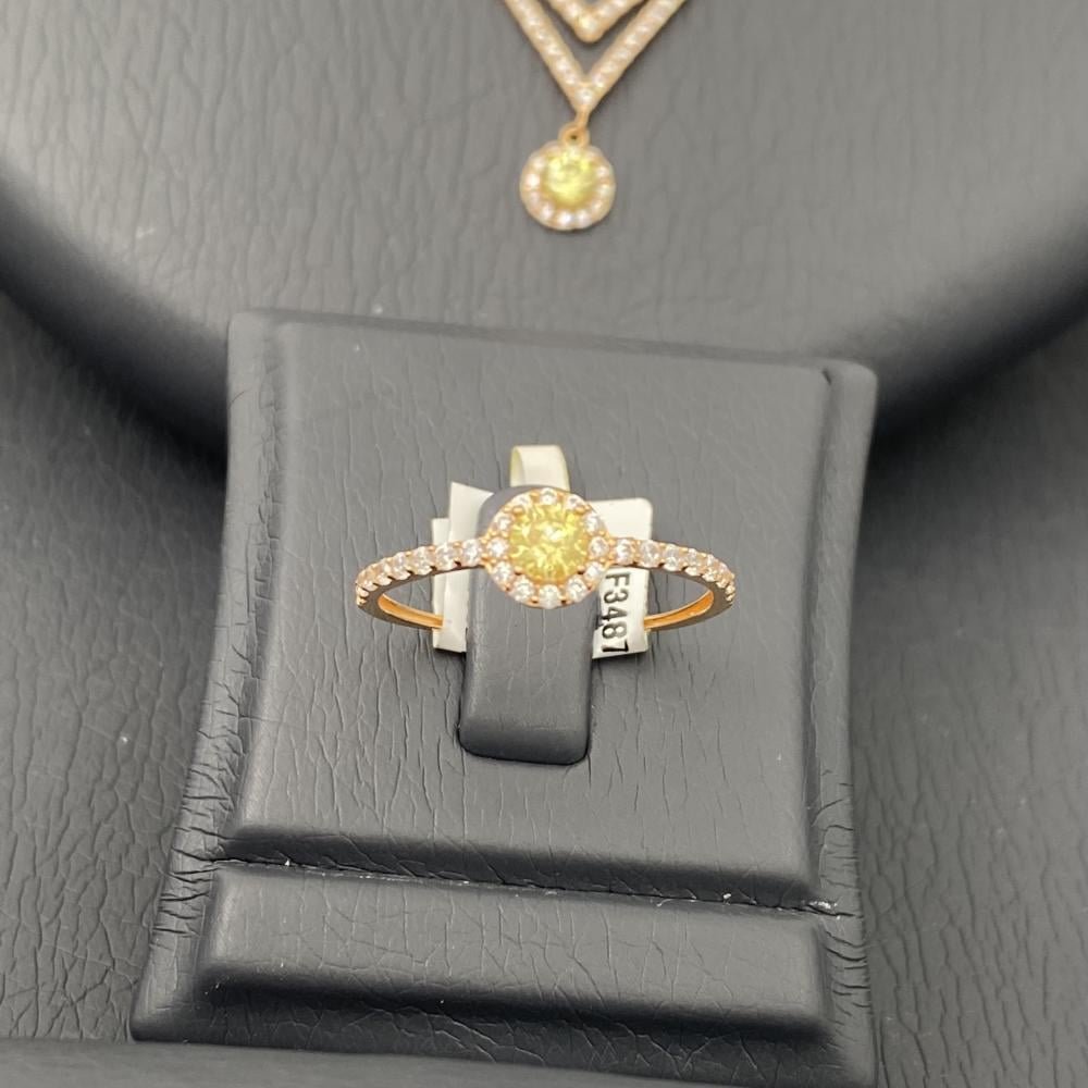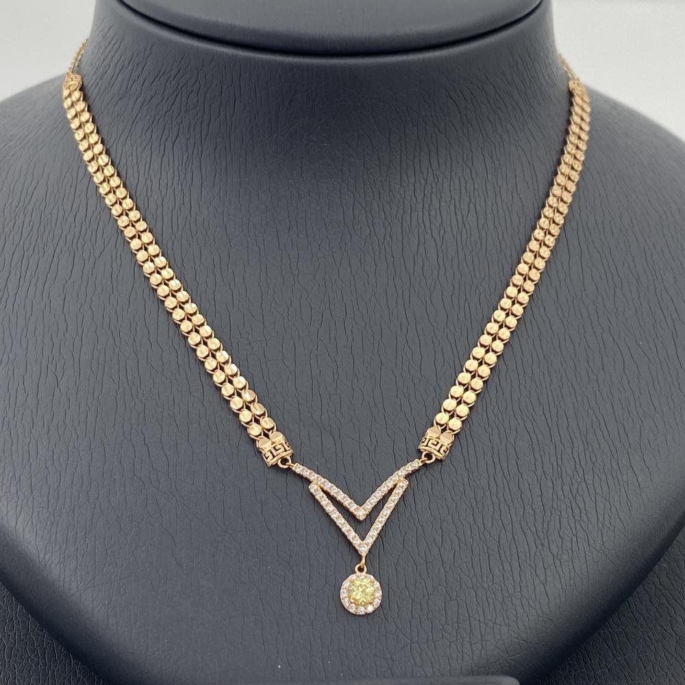 طقم ذهب كامل عيار 21 وزن 14.84 جرام بتعليقة شكل V وفص دائري مرصع بفصوص لامعة