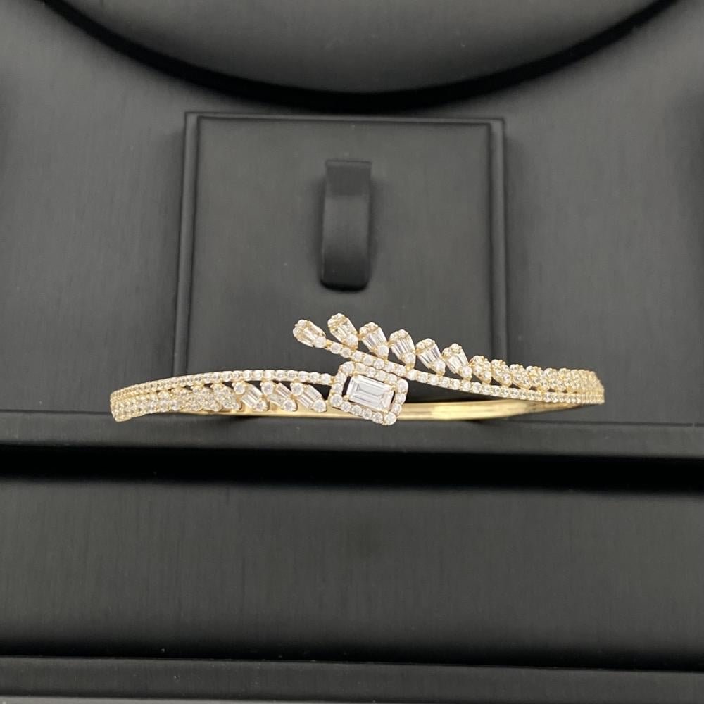 - بريق الألماس المُحاكي: الترصيع المكثف بالزركون الأبيض يغطي مساحة كبيرة من الطوق والإسوارة، ليعكس أعلى درجة من اللمعان والبريق شبيهة بالألماس الحقيقي.