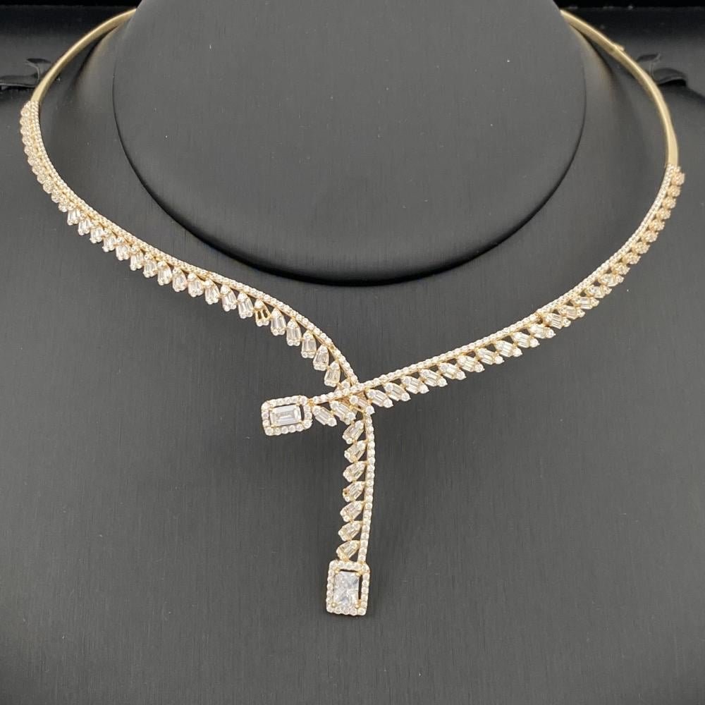مواصفات طقم طوق ذهب عيار 18 وزن 22.95 جرام بتصميم الياقة الفخمة المرصعة