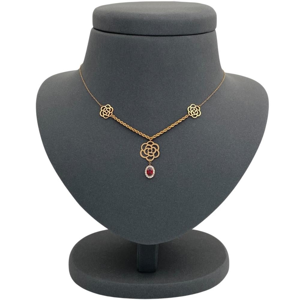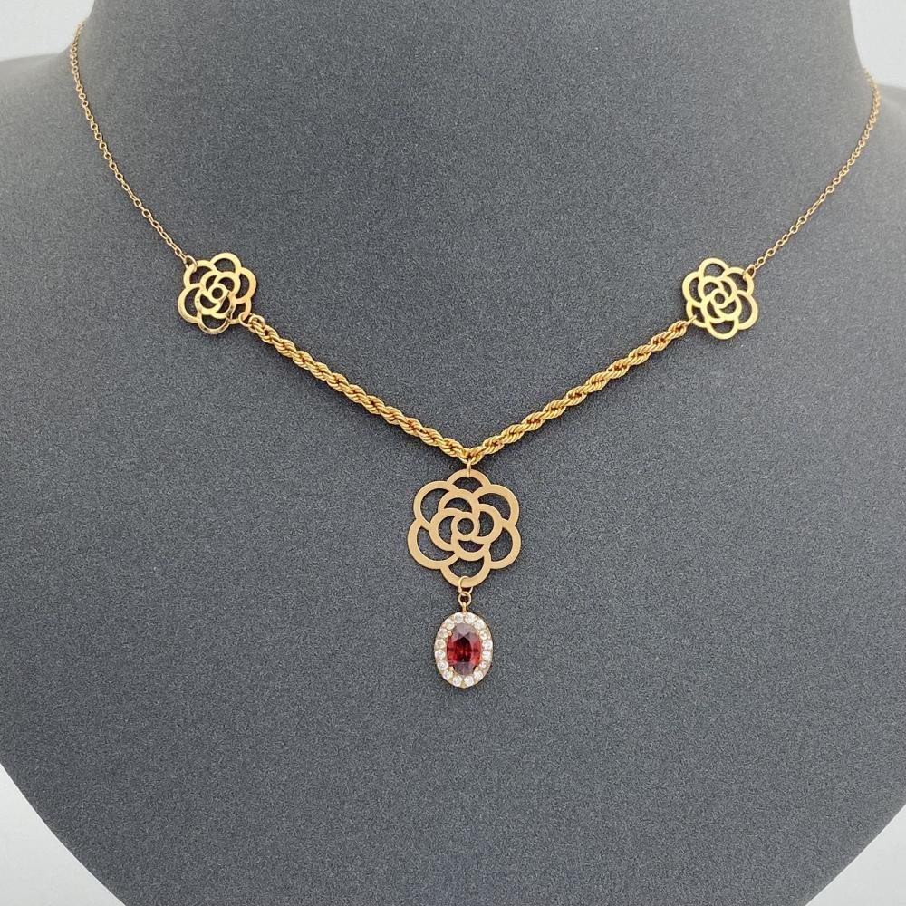 عقد ذهب الوردة عيار 21 وزن 1.71 جم بتعليقة حمراء أنيقة