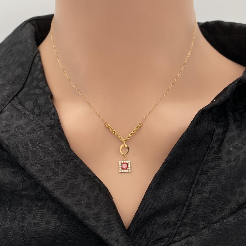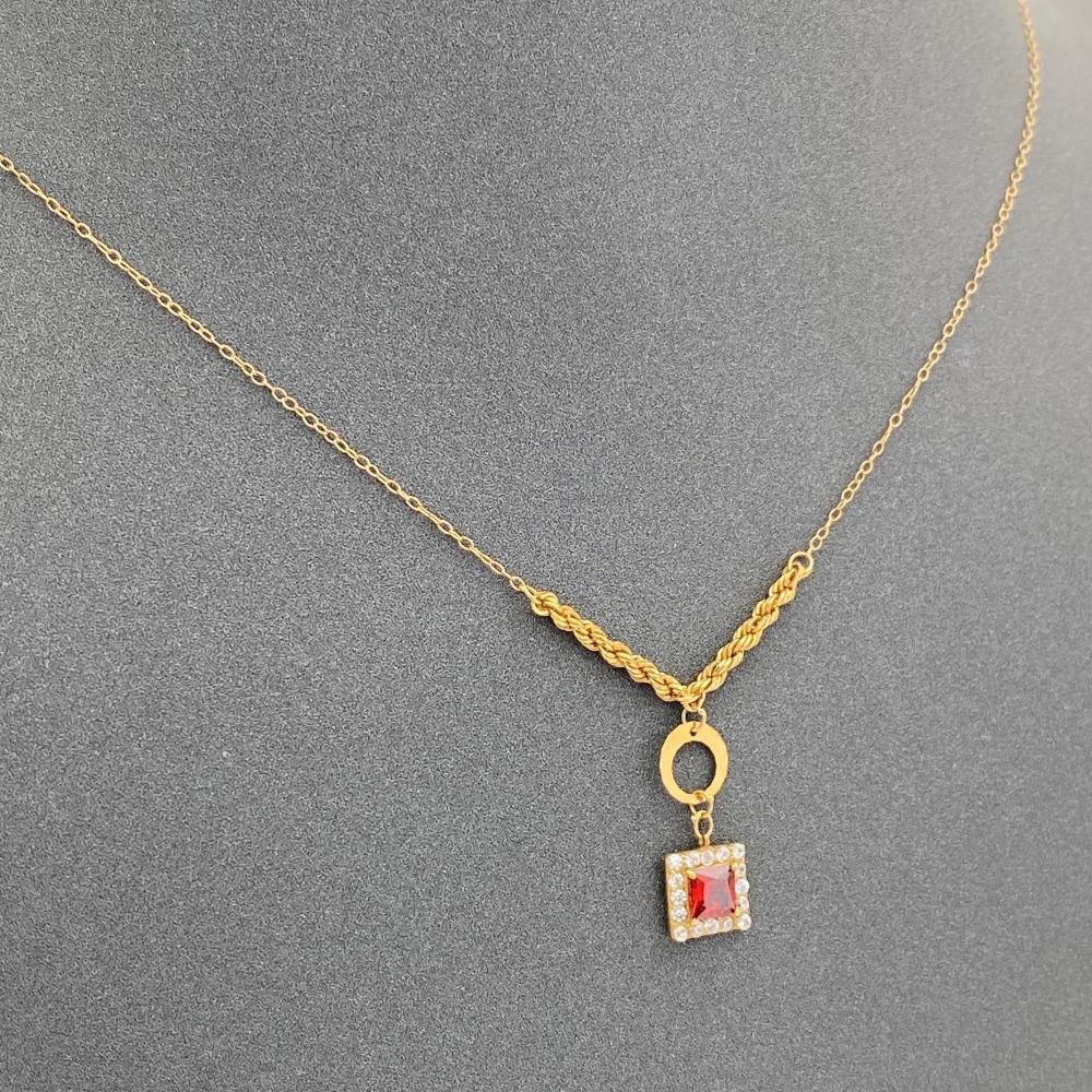 - حجر أحمر متوهّج في منتصف العقد يمنحك جاذبية لافتة تميزك عن الآخرين.